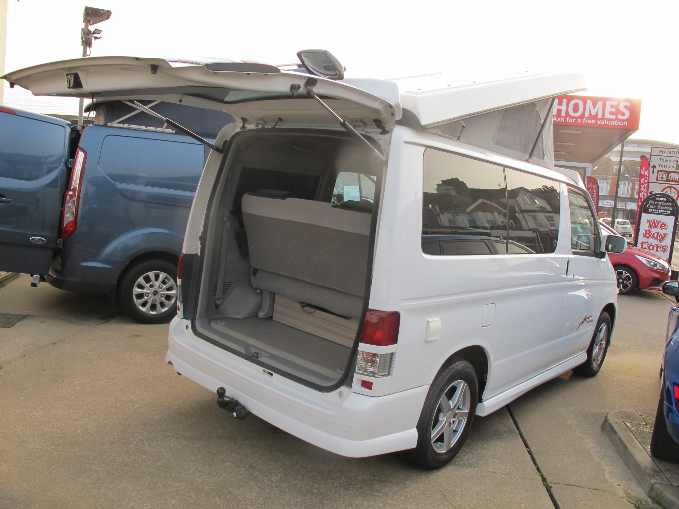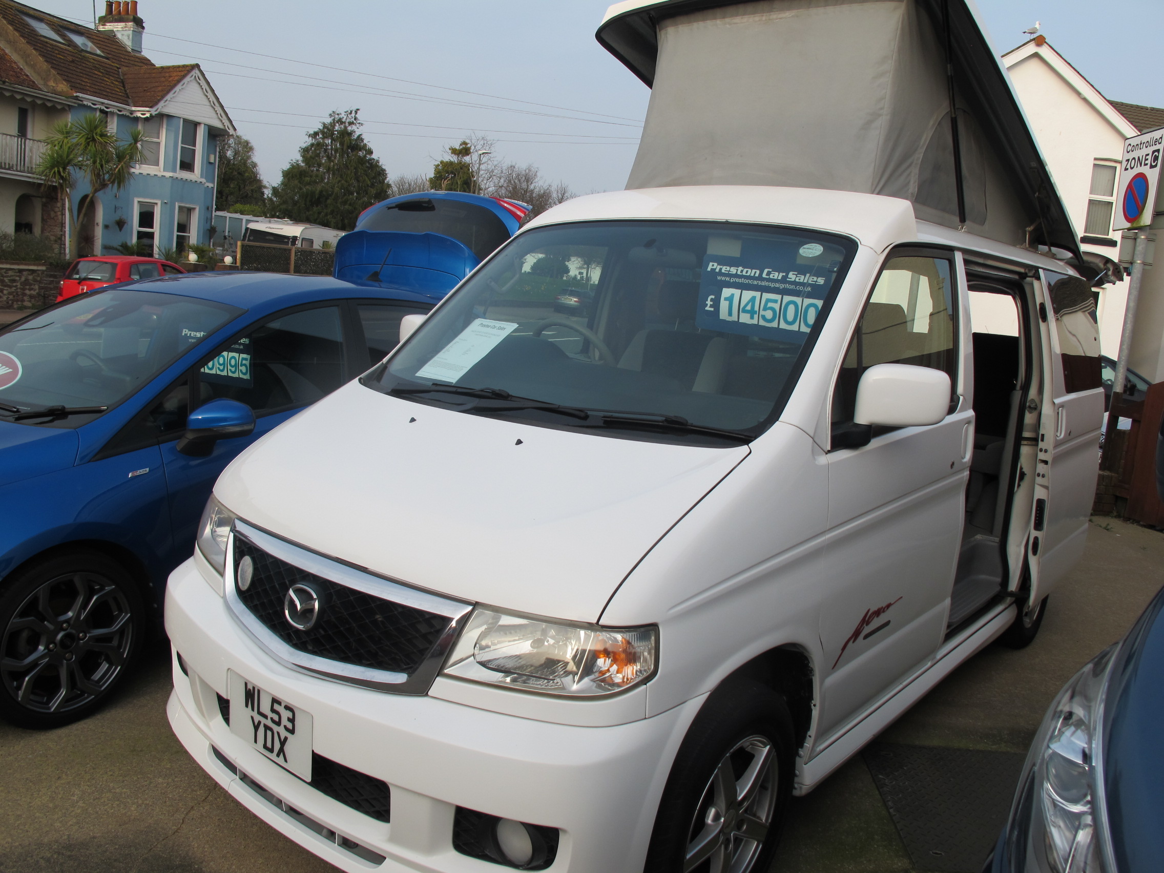 MAZDA BONGO WITH POP-TOP ELEVATING ROOF. FOUR BERTH, VERY WELL APPOINTED WITH FRIDGE/FREEZER, SINK/TAP, TWO BURNER GAS HOB, DETACHABLE TABLE, ELECTRIC WINDOWS/FOLDING MIRRORS, AIRCONDITIONING, REVERSING CAMERA, TOUCHSCREEN RADIO MEDIA , FOUR BELTED SEATS, OVERHEAD AND UNDER BED STORAGE, ELECTRIC BLINDS. ALL OUR MOTORHOMES ARE HPI CHECKED AND HABITATION CHECKED. PART EXCHANGE IS WELCOME.